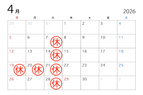 定休日:毎週火曜日 第3週日曜日・月曜日
