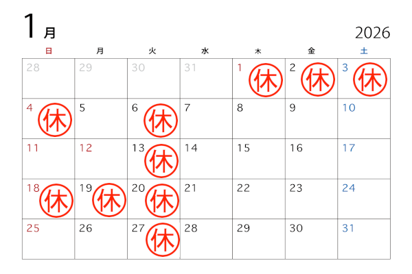 定休日:毎週火曜日 第3週日曜日・月曜日